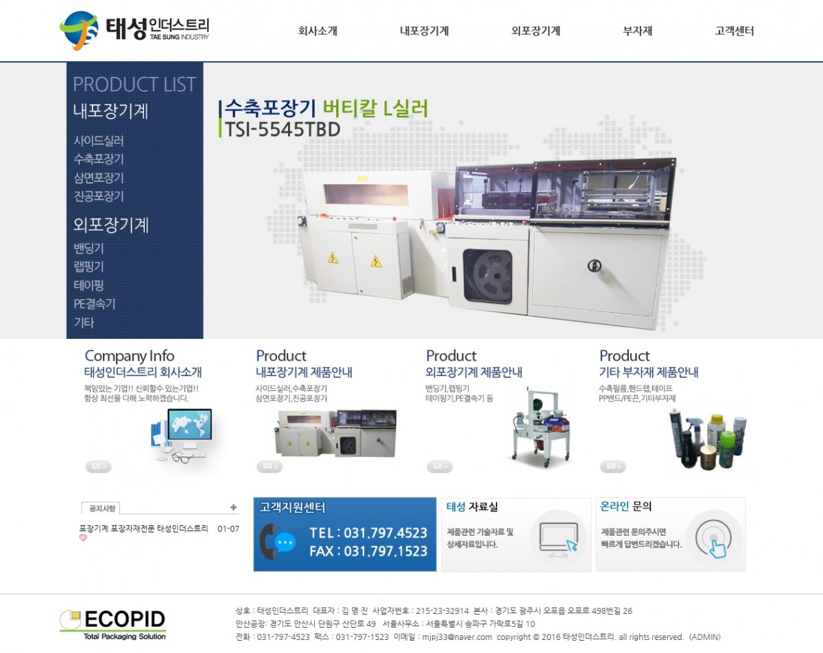 태성인더스트리 > 홈페이지