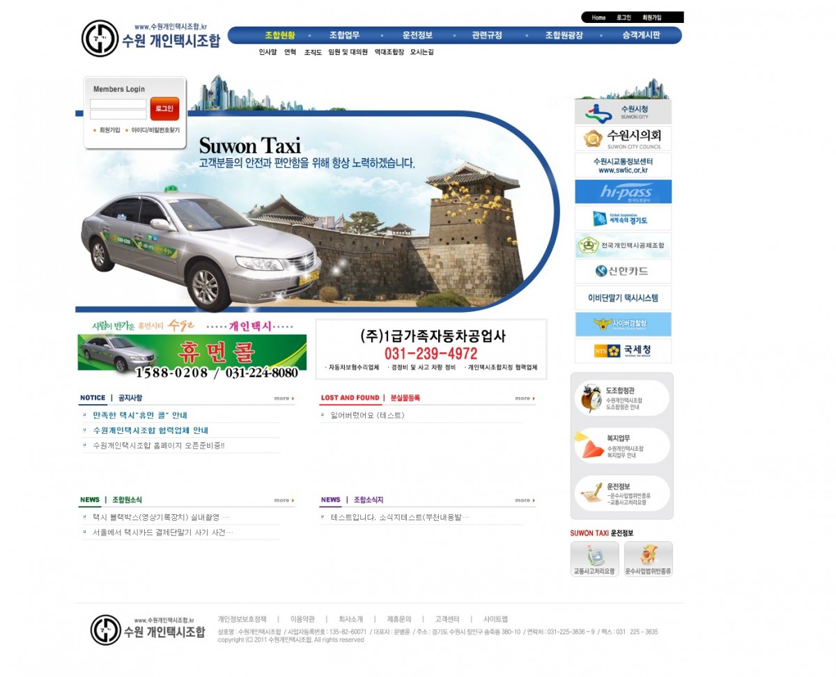 수원개인택시조합 홈페이지 제작
